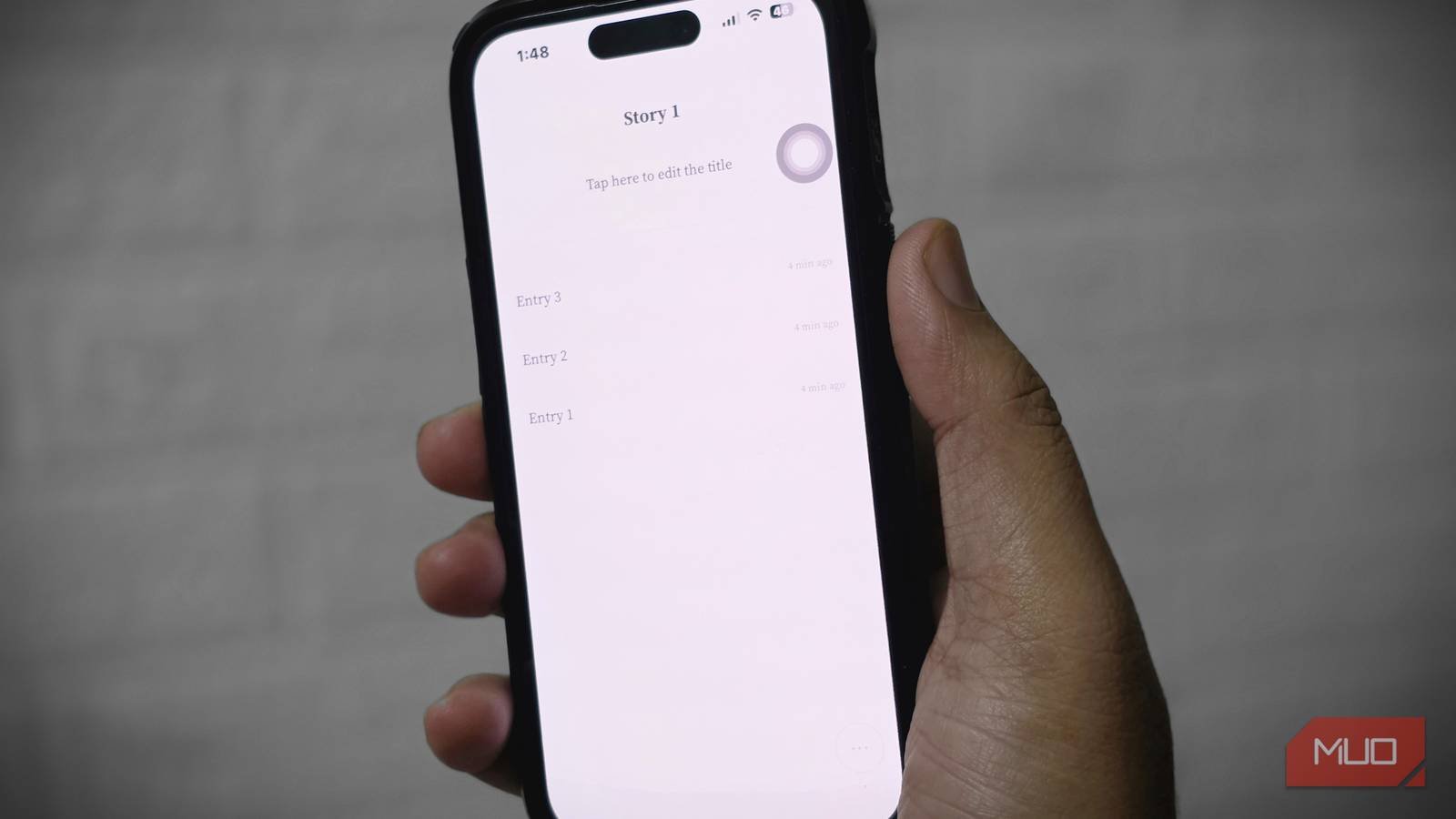 hand holding a phone showing pencake story screen with three entries listedjpg