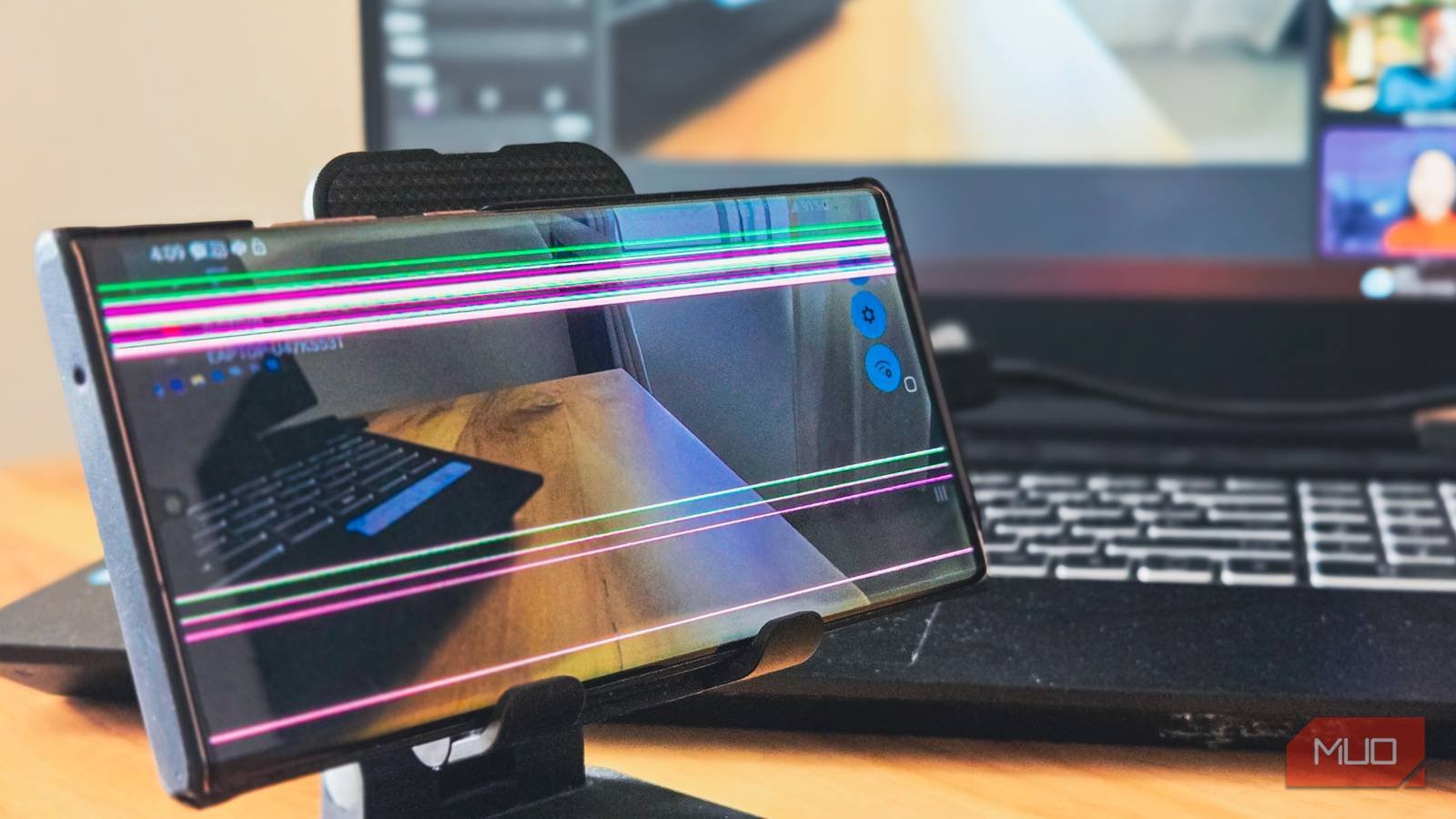 samsung galaxy note 20 ultra on a phone holder with a hp laptop in the backgroundjpg