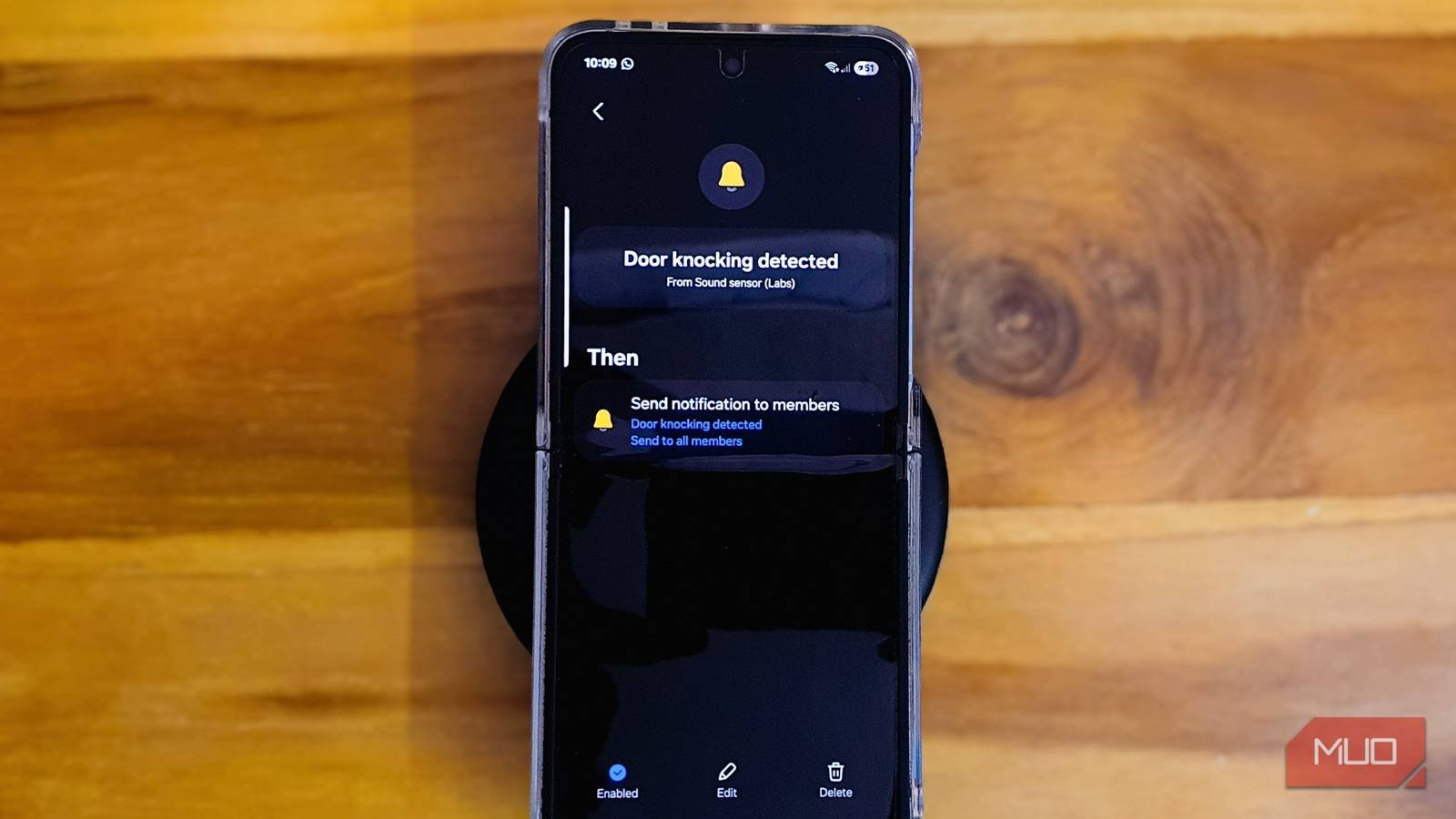 samsung galaxy z flip 6 kep on a wooden table with a keyboard on the edge 2 1jpg