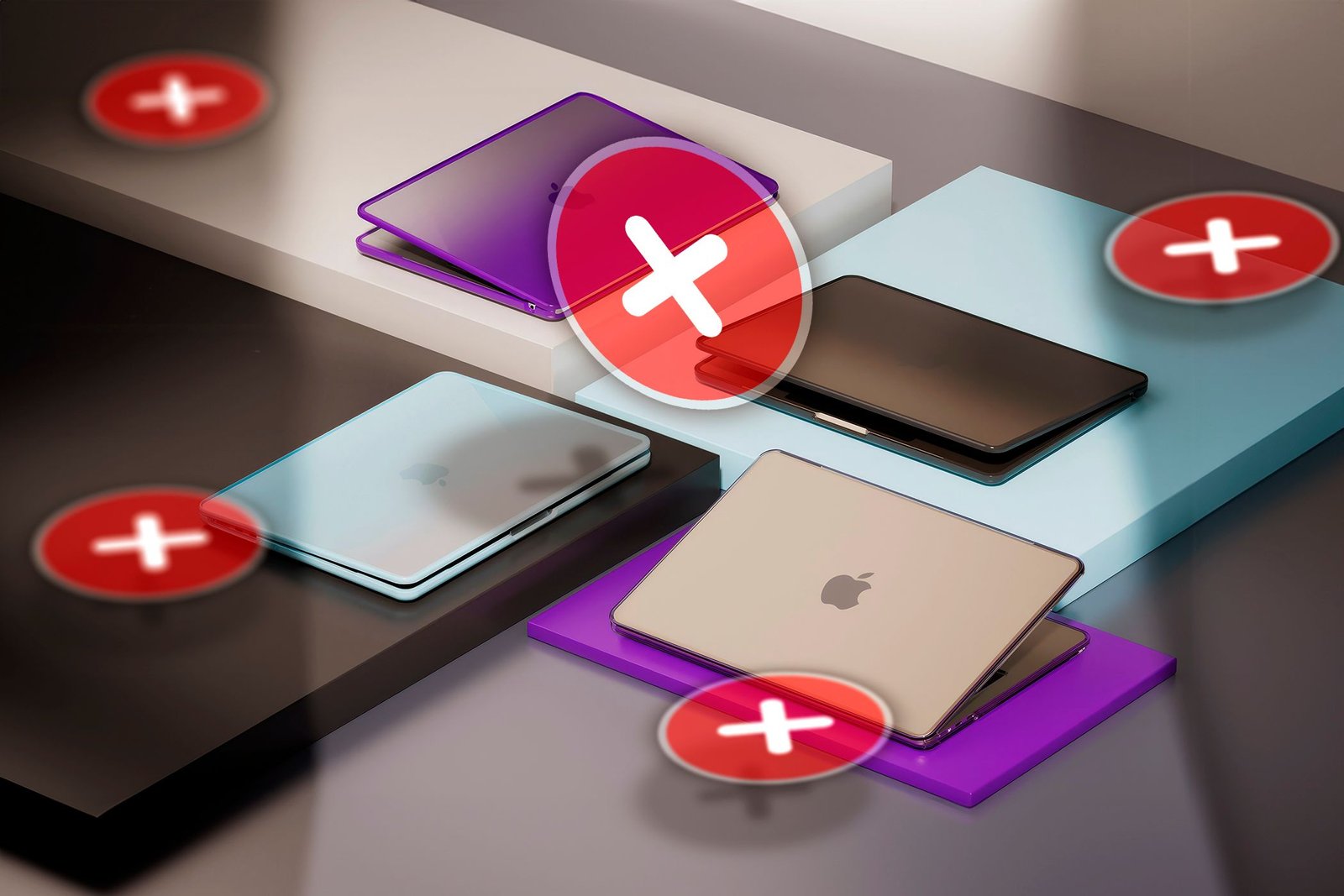 some macbook hard shell cases with several x signs around themjpg